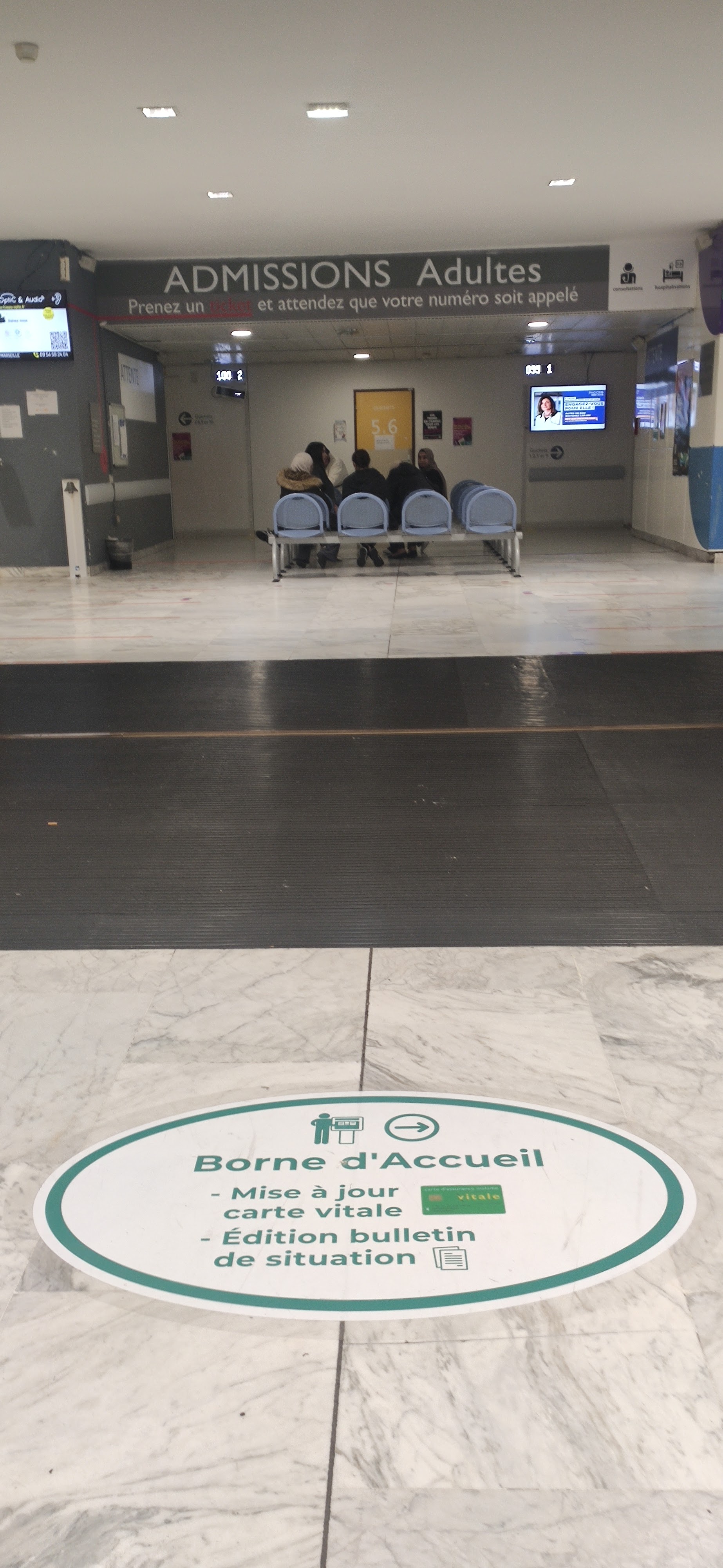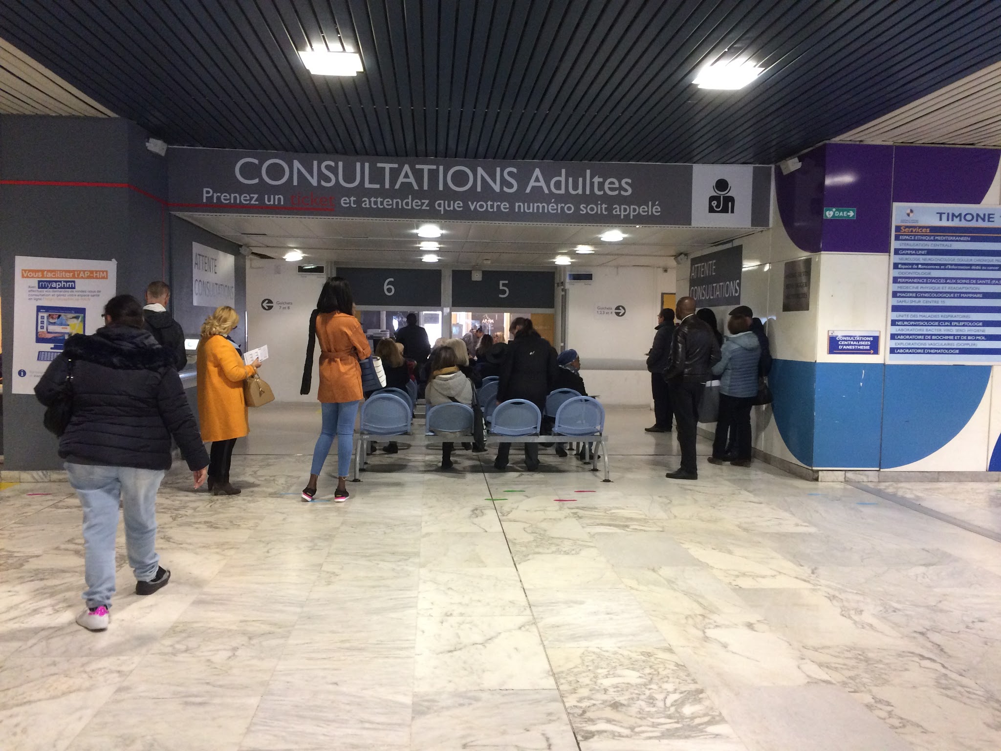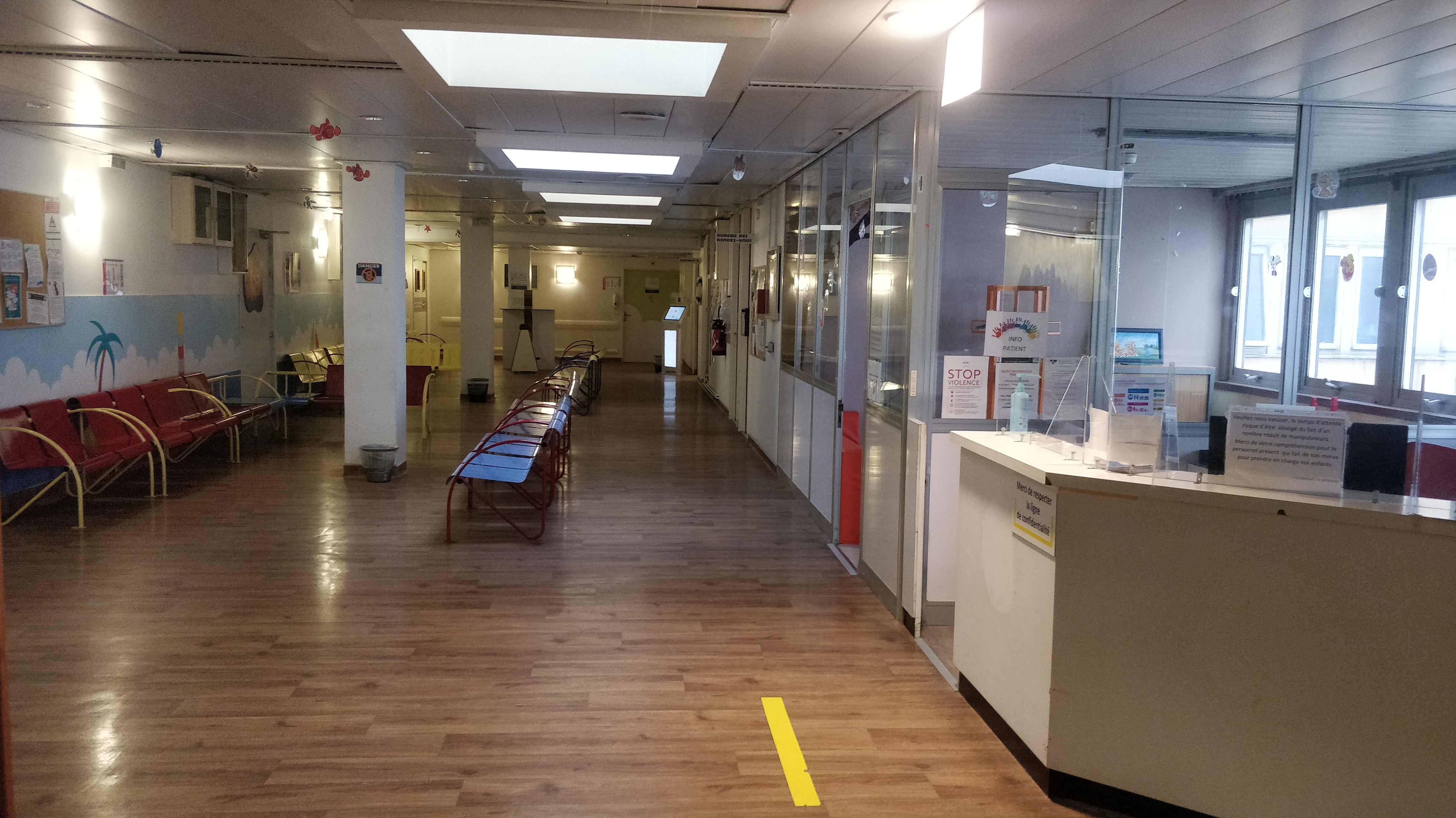 Ce matin 9h un seul guichet ouvert à l'accueil Timone Enfants. Plus de 10 familles faisaient la queue.